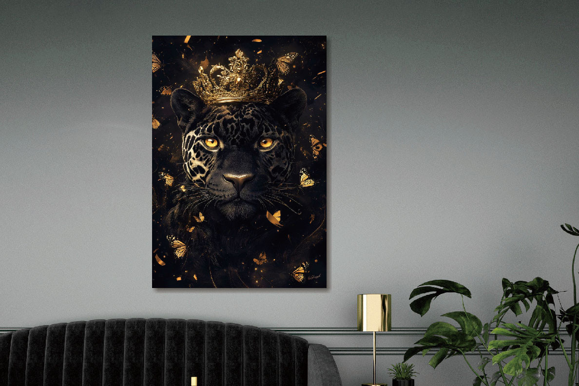Glasschilderij 110x160cm Zwarte panter met kroon