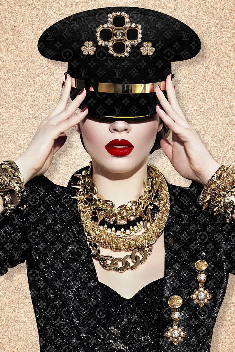 Glasschilderij 80x120cm Vrouw met gouden sierraden