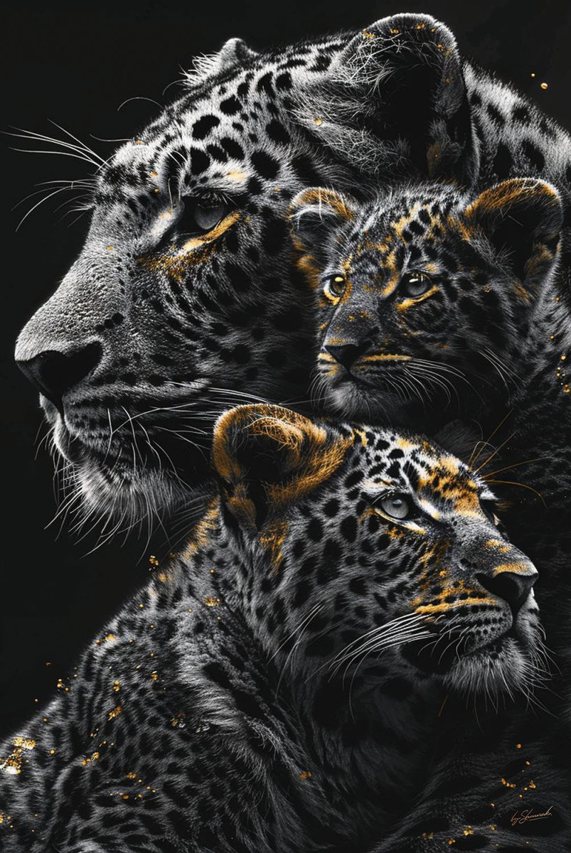 Glasschilderij 80x120cm Panters met gouden tinten