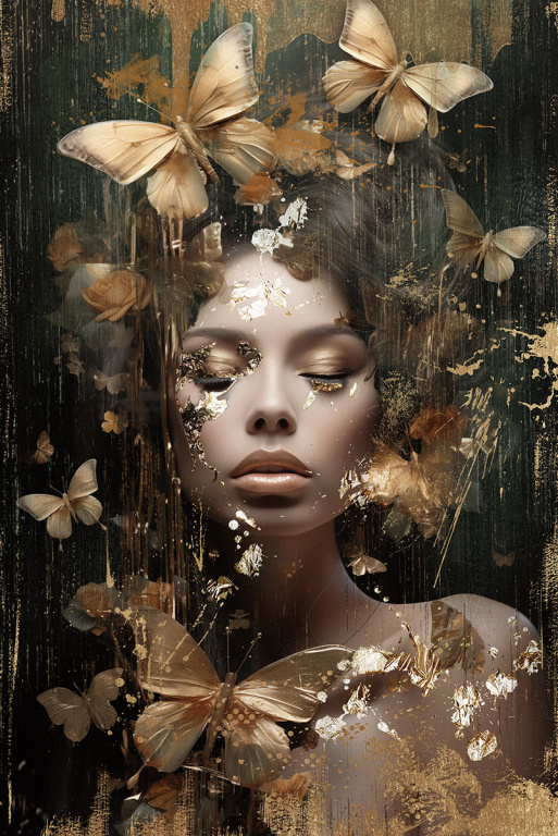 Glasschilderij 80x120x0.4 Dame met vlinders