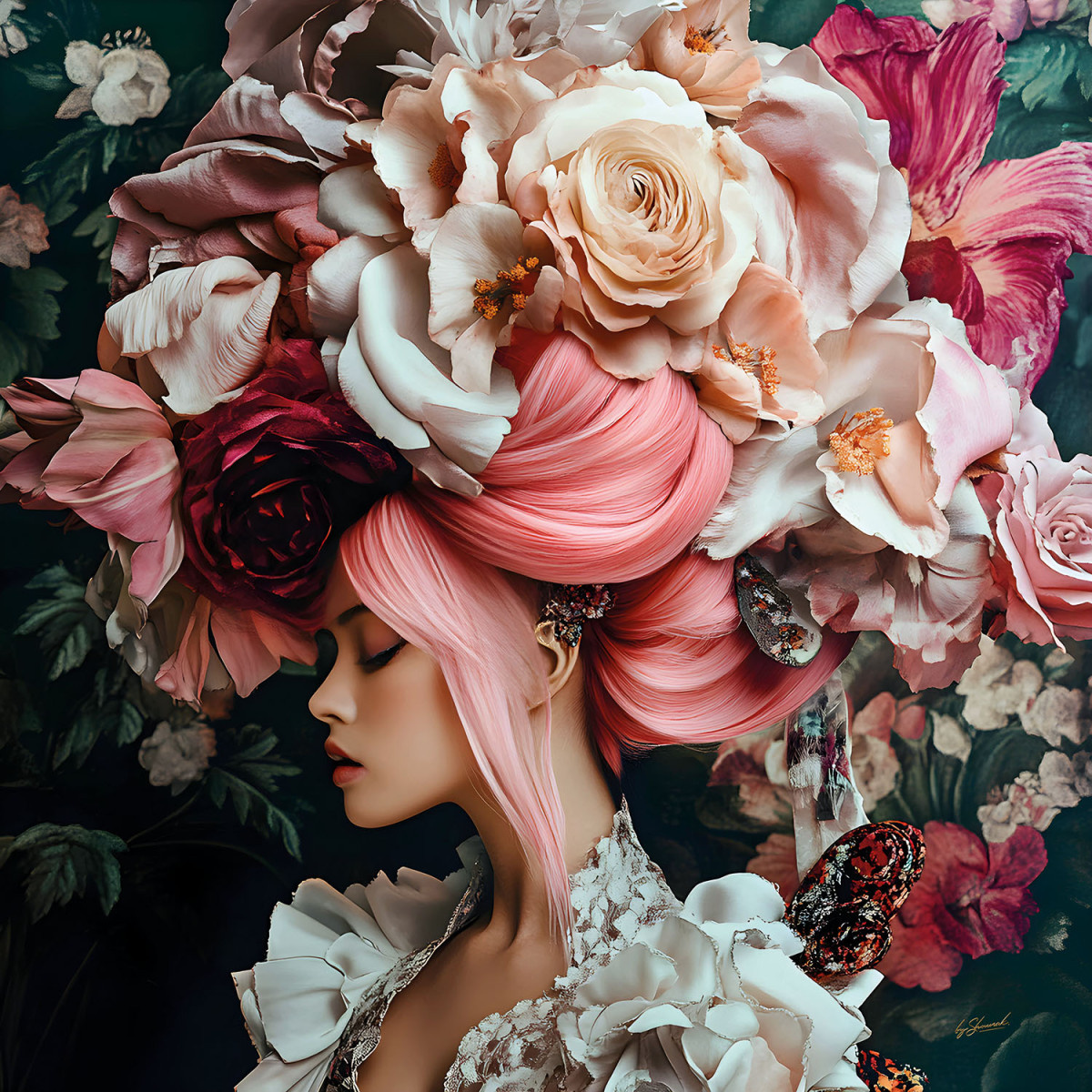 Glasschilderij 80x80cm Vrouw met bloemen