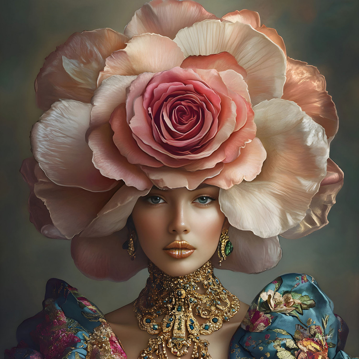 Glasschilderij 80x80cm Vrouw met grote bloem