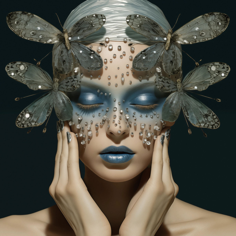 Glasschilderij 80x80x0.4 Vlinders met sieraden